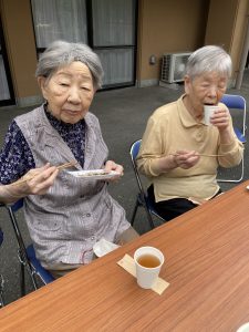 毎月恒例の栄養士によるスペシャルおやつの日もあり🍩今回も季節を感じるおやつに、皆さまの笑顔がたくさん見られました🎵「美味しいね」「待ってました」と、会話も弾みました。