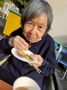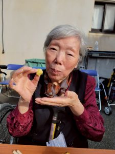 さらに、栄養士による「おやつパーティー」も行われました。季節を感じられる手作りおやつを前に、皆さま「美味しいね😋」と笑顔いっぱいに召し上がってくださり、和やかな時間となりました❤