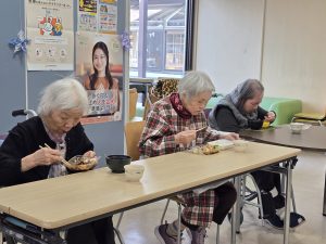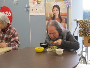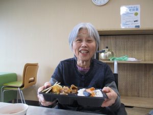 1月28日に、専門事業者の協力のもと「外注」イベントを開催しました。 ほっともっとのメニューから好きな物を選んでいただき、提供いたしました。 参加者、皆様の笑顔がとても印象的で、素敵な時間となりました。 これからも安心して、喜んでいただけるイベントが出来るよう心掛けたいと思います。