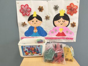 ひな祭りのお祝いに、近隣の保育園から園児の皆さんが来てくださり、大変賑やかなひとときとなりました。 園児たちは「うれしいひなまつり」の歌を披露し、手作りの手形や足形アートをプレゼントしてくれました。 歌の後には利用者様との交流も深まり、皆様の笑顔が溢れる楽しい一日となりました。 今回の投稿では、園児が写っている写真の掲載はできませんが、利用者様が制作された美しい貼り絵と、 感謝の気持ちを込めたおもちゃの写真を掲載します。
