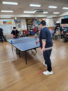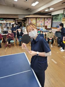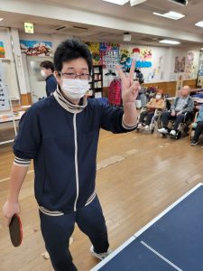 続いて施設イベントとして、職員による卓球大会🏓✨ 経験者にはスリッパ、バトミントンのラケットを持ってもらうという本気🔥のハンデ❢ 経験者も未経験者もぞれぎごちながらも一生懸命ラケットを振り、どんな一打もご利用者様の大きな歓声に包まれ、「頑張れ💪」「負けるな✨」と応援の声が広がっていく温かい空間に💕 笑い😁と拍手が👏重なり、会場がひとつになるのを感じました。