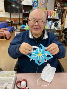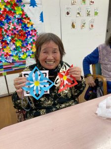 作業中は「かわいいね」「うちのひ孫もこのくらいの年だったなぁ」などと自然に会話が弾み、笑顔や笑い声が絶えない、和やかなひとときとなりました🎶 完成したカレンダーを見て、「華やかでいいね」「季節感じるね」と嬉しそうに話されている姿がとても印象的でした💛💛