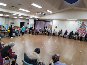 デイサービス・ケアハウス合同敬老会☺ 9月15日敬老の日、今年はデイサービスとケアハウス合同敬老会。 ケアハウスからは、米寿の方3名、卒寿の方1名計4名の方のお祝いを させて頂きました。式典の最後に、毎年お祝いに駆けつけてくれる「ヨーカムズ」の皆さんのライブで大いに盛り上がりました。「ヨーカムズ」の皆さんありがとうございました。 ケアハウス、並びにデイサービスの皆さま、これからもずっと、笑顔で健やかな日々をお過ごしください。スタッフは、いつも皆さまの元気な姿に励まされています。これからも皆さまが健康で笑顔あふれる毎日を過ごせるよう、しっかりと支援を続けてまいります。改めておめでとうございます。