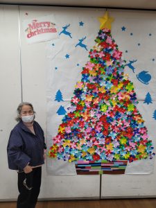 今月の壁画づくりでは、クリスマスツリー🎄を製作しました。 折り紙を丁寧に貼ったり、飾りを相談しながら工夫したりと、皆様の個性がきらり✨と光る時間でした😌 完成した壁画はとても華やかで、通るたびにふっと笑みがこぼれるような優しい彩りをみせています⭐