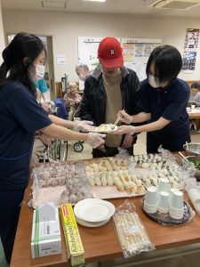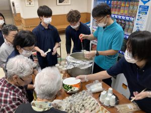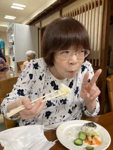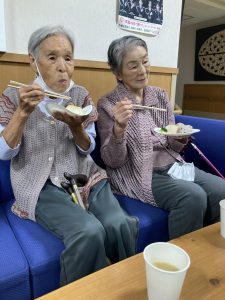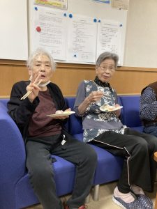 デイサービス・ケアハウス合同夏祭り🌞 大変遅くなりましたが、8月21日、22日の2日間、デイサービス・ケアハウス合同夏祭りを開催しました。ケアハウスからは8名のご入居様が参加されました。 わたあめにかき氷、たこ焼きを食べて、お腹に祭りを感じたら、最後は、皆さんで炭坑節とやっさいもっさいを踊り、体いっぱいに祭りを感じて大いに盛り上がりました。