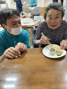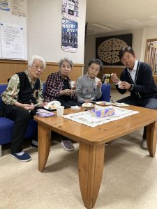 デイサービス・ケアハウス合同敬老会☺ 9月15日敬老の日、今年はデイサービスとケアハウス合同敬老会。 ケアハウスからは、米寿の方3名、卒寿の方1名計4名の方のお祝いを させて頂きました。式典の最後に、毎年お祝いに駆けつけてくれる「ヨーカムズ」の皆さんのライブで大いに盛り上がりました。「ヨーカムズ」の皆さんありがとうございました。 ケアハウス、並びにデイサービスの皆さま、これからもずっと、笑顔で健やかな日々をお過ごしください。スタッフは、いつも皆さまの元気な姿に励まされています。これからも皆さまが健康で笑顔あふれる毎日を過ごせるよう、しっかりと支援を続けてまいります。改めておめでとうございます。