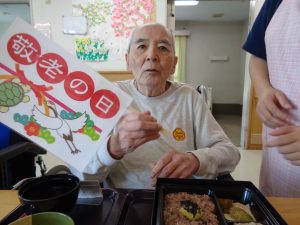 まずは、敬老会特別メニューの昼食からスタート🍴いつもより豪華なお食事に、皆さま食欲旺盛で 「美味しいね」「嬉しいね」と笑顔がたくさん見られました。