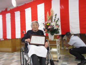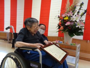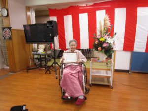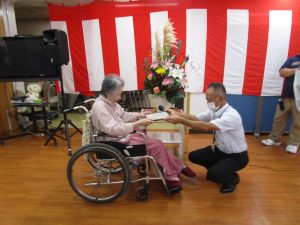 デイサービス・ケアハウス合同敬老会☺ 9月15日敬老の日、今年はデイサービスとケアハウス合同敬老会。 ケアハウスからは、米寿の方3名、卒寿の方1名計4名の方のお祝いを させて頂きました。式典の最後に、毎年お祝いに駆けつけてくれる「ヨーカムズ」の皆さんのライブで大いに盛り上がりました。「ヨーカムズ」の皆さんありがとうございました。 ケアハウス、並びにデイサービスの皆さま、これからもずっと、笑顔で健やかな日々をお過ごしください。スタッフは、いつも皆さまの元気な姿に励まされています。これからも皆さまが健康で笑顔あふれる毎日を過ごせるよう、しっかりと支援を続けてまいります。改めておめでとうございます。