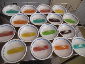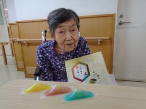 ![]() ![]() 9月24日に敬老会を行いました。昼食に特別なメニューを提供し、午後より式典で賀寿の方々を施設長及び職員一同で表彰後に催し物を行い、皆様に楽しんでいただきました。敬老の祝いの品として富士山羊羹を提供し、色鮮やか羊羹の見た目と味を楽しんでいただきました。